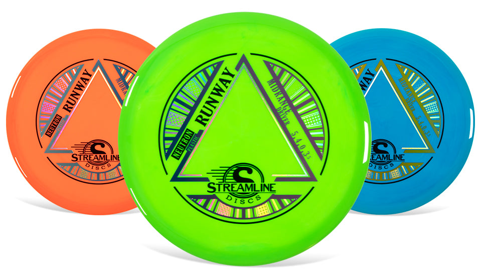 The Runway can handle powerful throws with pinpoint accuracy. In high wind situations, this midrange will hold straight lines with a pronounced finishing fade. Power throwers will find a control midrange that has the stability to fight out of turnover and forehand lines. The Runway offers more glide than the popular MVP Deflector due to its less aggressive fade at the end of flight. The Runway will keep its stability while gradually breaking in to a trusted stable midrange round after round.